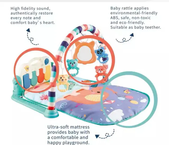 Мултифункционалната подлога за бебе е идеална за стимулирање на развојот и забава на вашето малечко. Оваа подлога е специјално дизајнирана со многу функции и детали, што ќе го задоволат и најизбирливото бебе и ќе му пружат одлична забава. Има мека и удобна подлога, која го штити бебето од тврди и ладни површини, а истовремено му обезбедува комфор и поддршка. Освен што е мека и удобна, оваа подлога за играње има и многу интересни и забавни детали. Вклучува различни играчки, висечки ирачки и звучни ефекти, што го стимулираат развојот на сетилата на вашето бебе. Играчките се дизајнирани со јаки бои и различни облици, што го поттикнуваат визуелниот развој на бебето.