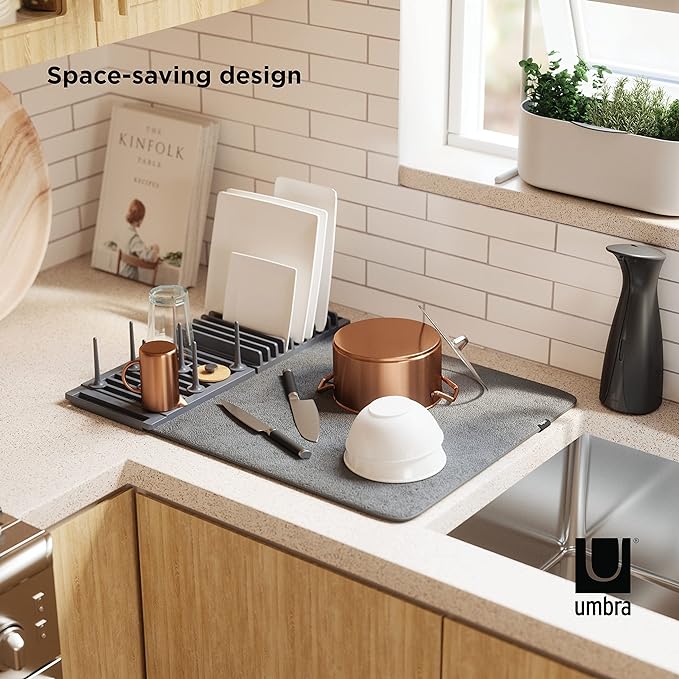 Оваа цедалка за садови со подлога е идеален избор за секој дом што бара практично и ефикасно сушење. Со својата лесна конструкција и функционален дизајн, овозможува редење на чинии, чаши и прибор, додека меката подлога од микрофибер ја апсорбира влагата и ја заштитува работната површина. Подлогата доаѓа со 8 штипки и овозможува максимална приспособливост и ефикасност на просторот при сушење садови. Супер-апсорбирачката подлога од микрофибер и вклучениот држач за садови со штипки помагаат брзо да се исушат вашите садови. Решение за сушење што заштедува простор, обезбедува складирање и организација, а истовремено делува како функционален механизам за сушење. Благодарение на својот преклоплив дизајн, цедалката за садови зазема минимален простор кога не се користи. Совршена за помали кујни, кампување или дополнително сушење садови кога имате гости.